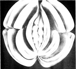 Das Problem, das Judy Chicago hat, ist, daß sie es nicht schafft, die Erfahrung der Diskriminierung, das heißt, der gesellschaftlichen Rollen-Festlegung, die sie ja zunächst zurückzuweisen versucht, so radikal zu analysieren, daß sie ihr endgültig entgeht. Im Gegenteil, es kommt zu zwanghaften Identifizierungen gerade mit dem traditionellen Weiblichkeits-Muster. Dem Prozeß der Bewußtwerdung einer Kluft zwischen den männlichen und weiblichen Feldern und ihren einseitigen Zuschreibungen folgt keine subversive Strategie. Sie beugt sich dem Identitätszwang und ordnet sich selbst dem allgemeinen Weiblichen zu, wie es die patriarchale Kultur auf der Basis biologistischer Modelle schon längst definiert hat. Die narzißtische Kränkung, die allerdings mit der Identifizierung mit dem vorgegebenen Weiblichen einhergeht, wird auf immanente Weise kompensiert: indem das in der Gesellschaft so verachtete Weibliche zum göttlichen Prinzip umgewertet wird, das nach einem Verehrungs-Kult verlangt: "Frau zu sein bedeutet, ein Objekt der Verachtung zu sein; und die Vagina, das Merkmal der Weiblichkeit wird abgewertet. Die Künstlerin sieht sich verachtet und wählt dieses Symbol ihres Andersseins als Kennzeichen ihrer Bildsprache. Dadurch schafft sie sich ein Vehikel, mit dem sie sich der Wahrheit und Schönheit ihrer Identität versichern kann."[13]