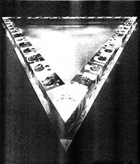 In dem Moment, wo eine allgemeingültige weibliche Geschlechtsidentität angenommen wird, kann jede Frau jede andere repräsentativ ersetzen, denn dann ist jede Frau ausschließlich Repräsentantin ihrer Gattung. In diesem System bleibt folgerichtig, daß schließlich alle historischen Frauen durch florale Vulvaformen repräsentiert werden können, wie es in Judy Chicagos auch bei uns berühmt gewordenen Projekt der "Dinner-Party" geschieht. Unter dem Vorsitz einer Super-Frau, in deren Namen dann auch die anonymen 400 Frauen aufgehen, die an dem Projekt mitgearbeitet haben, stellt sich ein totalitäres System der Negierung aller Unterschiede mit dem Ziel der Vereinheitlichung her.